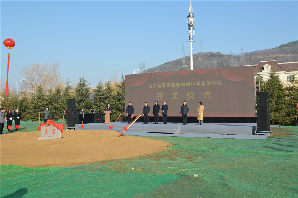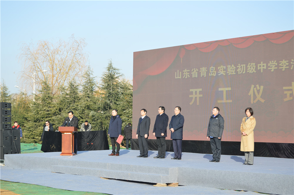 12月27日上午,山东省青岛实验初级中学李沧分校开工仪式在学校建设现场举行。青岛市委教育工委常务副书记,市教育局局长、党组书记刘鹏照,李沧区委书记王希静出席仪式并致辞。李沧区政府区长张友玉,青岛市教育局副局长姜元韶,青岛实验初中校长孙晓东等参加学校奠基仪式。