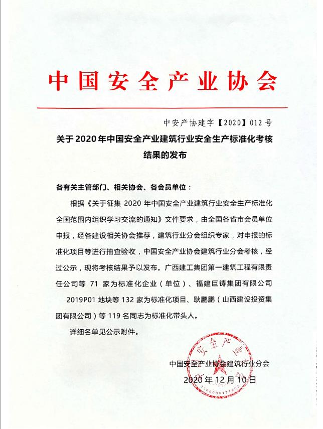 此次获奖不仅是对集团安全生产建设的极大鼓舞,更是对集团安全生产标准化管理的肯定。集团也将以此为契机,运用安全标准化管理举措,不断提高项目安全生产管理水平,打造更多的标杆项目和示范工程。