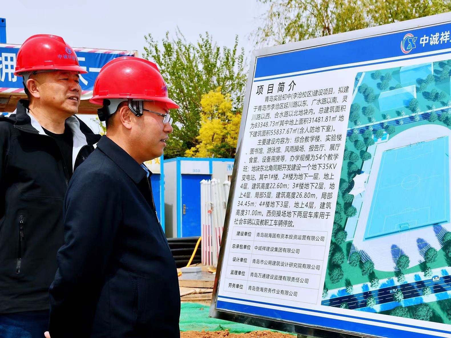 2021年4月30日上午,李沧区区委副书记、区长张友玉一行莅临集团公司承建青岛实验初中(李沧校区)建设项目部指导工作,建设方董事长李珂、集团公司常务副总裁王磊全程陪同。