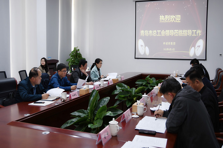 4月13日下午,青岛市总工会副巡视员王爱民、市总工会办公室主任姜海舰、李沧区总工会党组书记、常务副主席王彤宣、浮山路街道党工委副书记、工会主席张向阳、世园街道党工委副书记、工会主席由红新等工会领导一行莅临集团开展“大调研”及“查保促”督导工作,中诚祥集团董事长陈相华,集团执行总裁傅隆,副总裁刘坤出席会议。