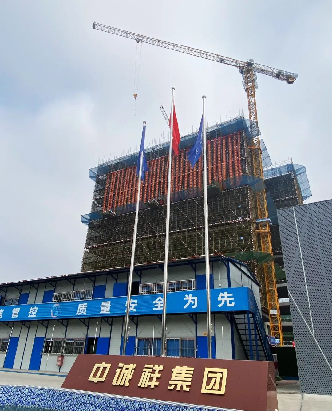 建设方融海集团副总经理吕磊、项目负责人蔡雷,中诚祥集团董事长陈相华、总裁陶官思等集团相关领导及监理单位、劳务单位领导出席本次封顶仪式。