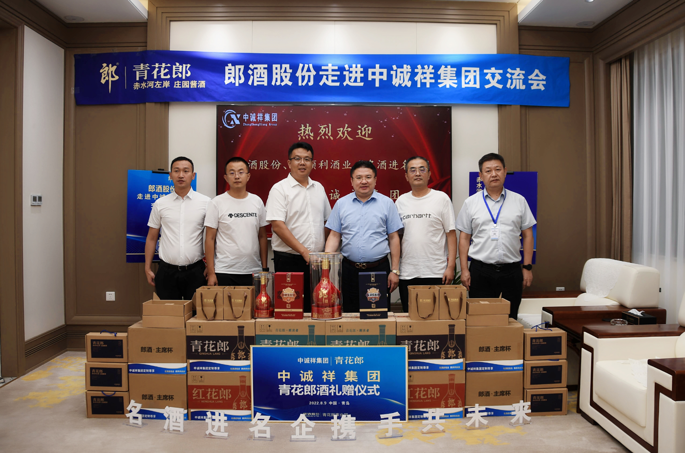 8月9日,郎酒“名酒进名企”活动走进中诚祥集团圆满举行。郎酒青花郎事业部华东大区青岛办事处总经理虢宏伟,青岛德顺利酒业董事长刘格民、总经理刘德天,郎酒青花郎事业部华东大区青岛品牌经理杨水明、品牌部业务经理任璐等共同拜访中诚祥集团。集团董事长陈相华、总裁陶官思出席活动。