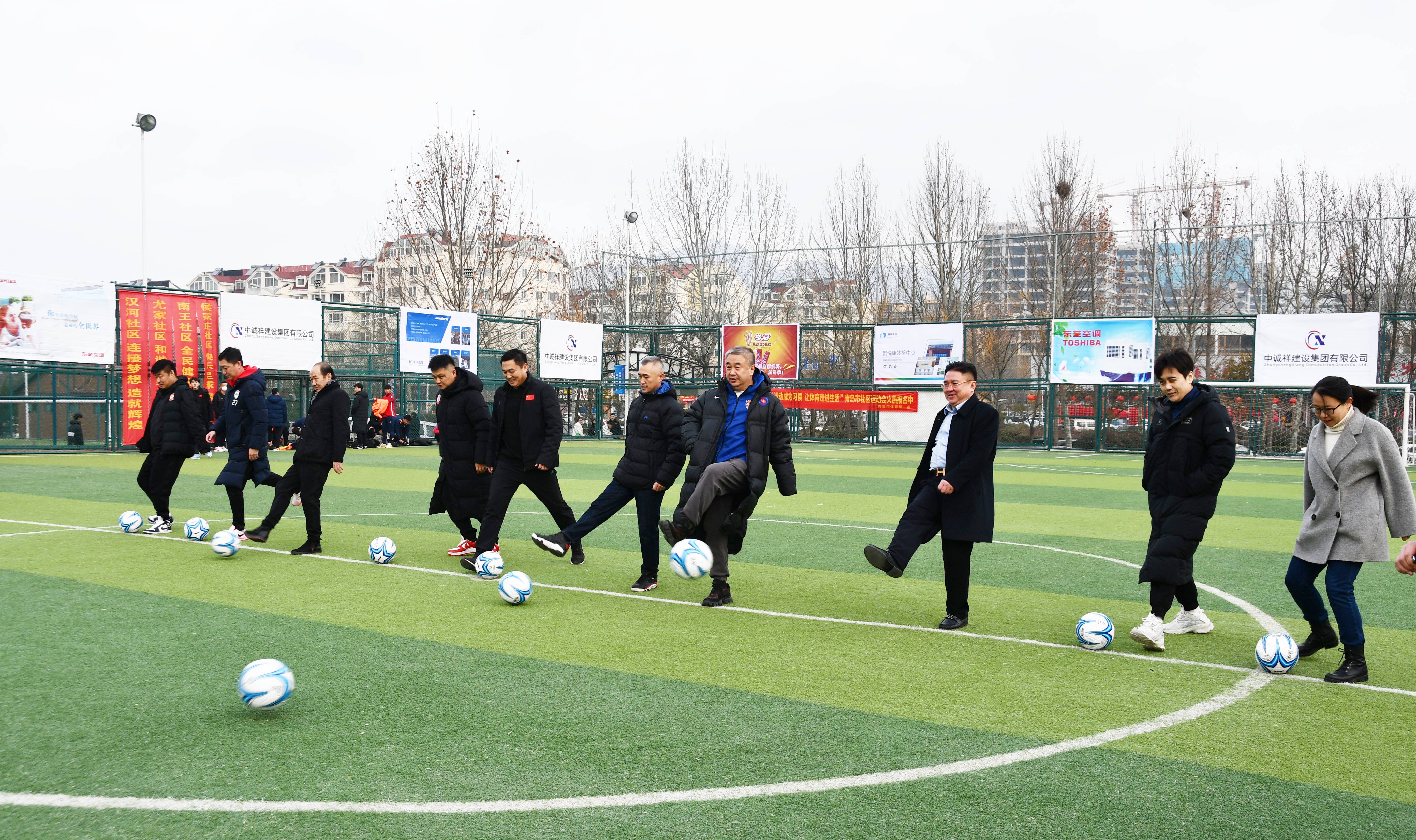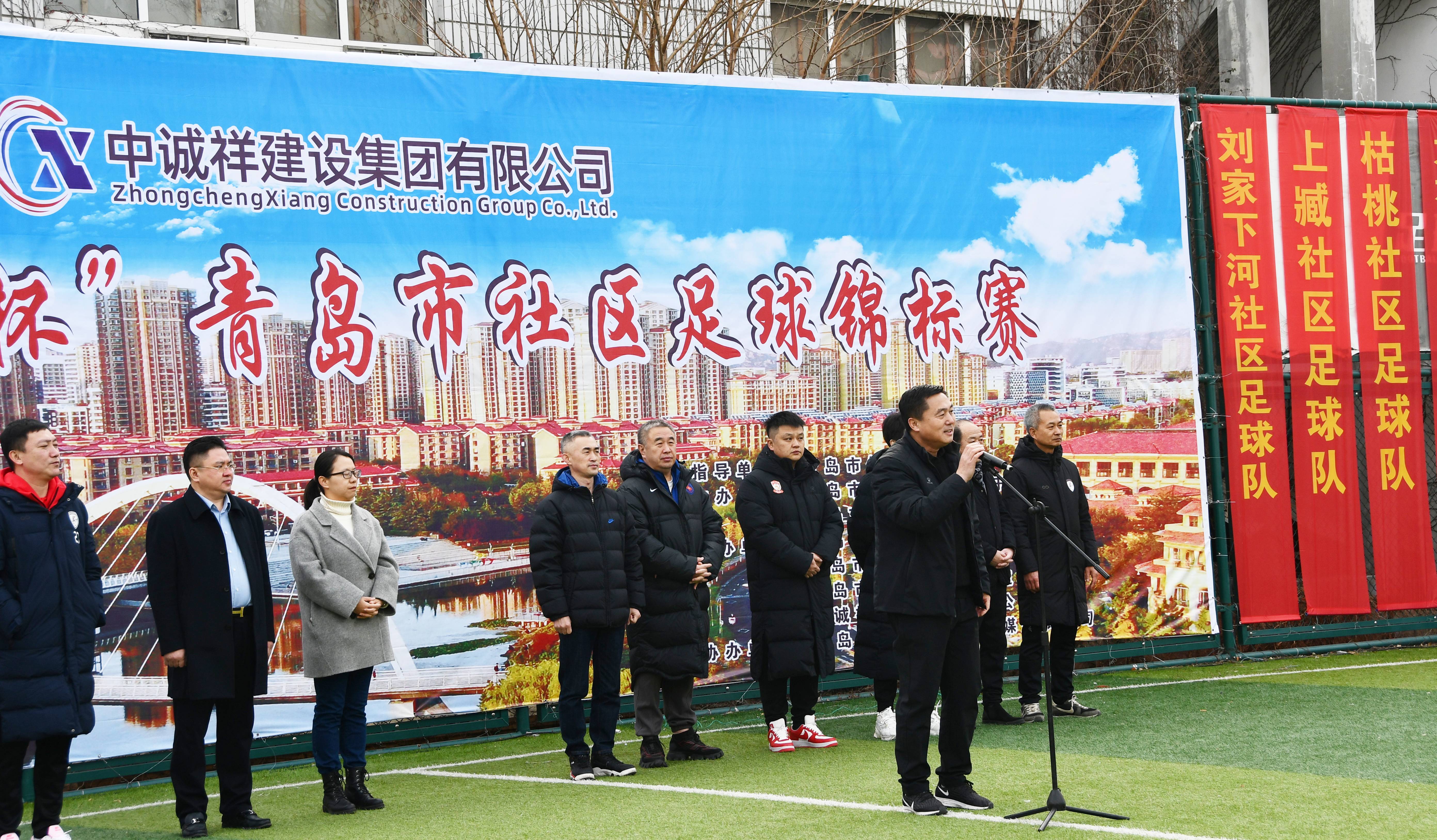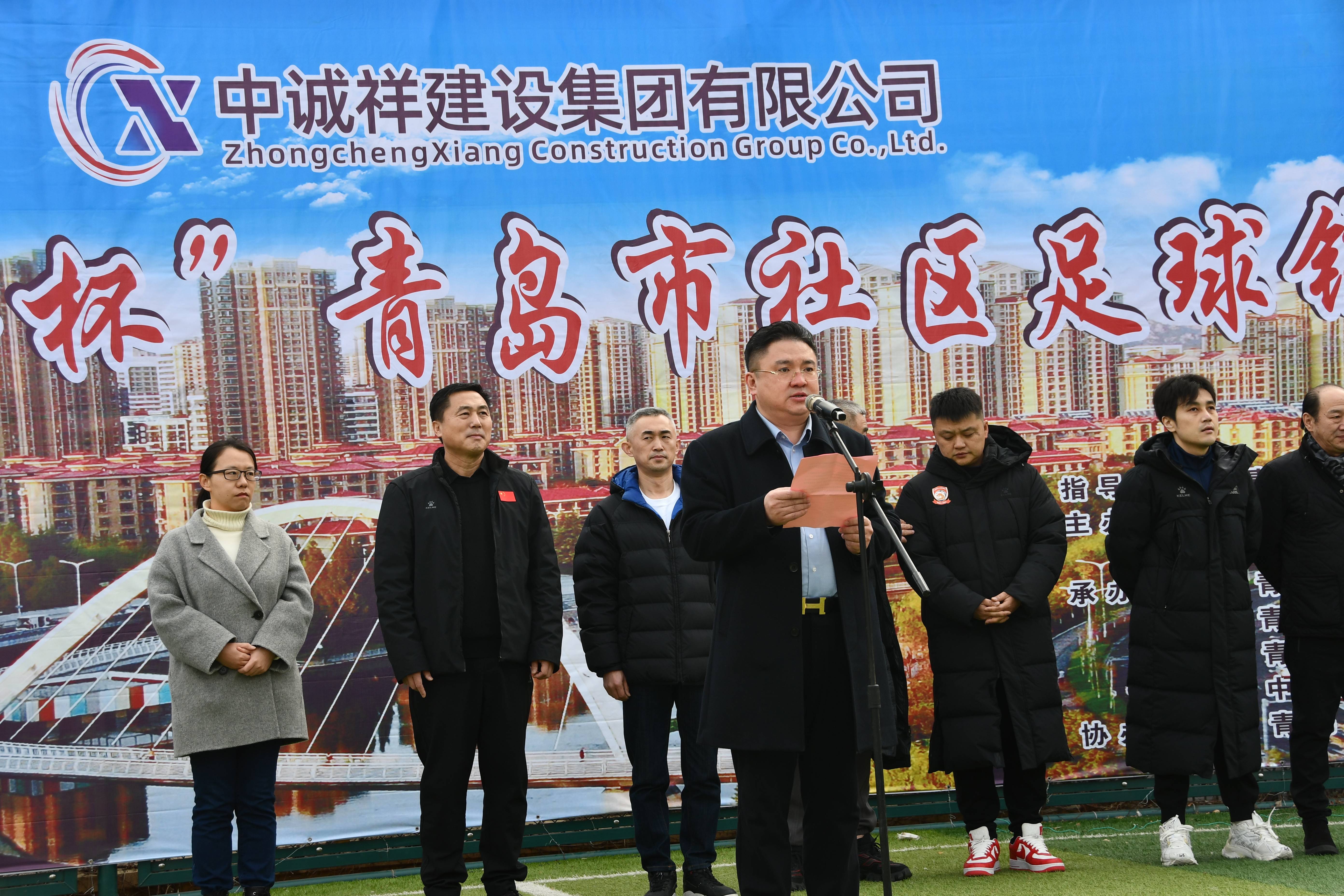 春风送暖,阳光明媚,万物复苏。2月11日,第二届“中诚祥杯”青岛市社区足球锦标赛在李沧区九水街道刘家下河社区全民健身中心足球场顺利开幕。青岛市足球运动管理中心主任田卫国,李沧区教体局党组成员、总督学姜帅昌,李沧区九水街道党工委副书记张娟,中诚祥建设集团有限公司董事长陈相华出席了开幕式,乔伟光、徐尚、汤乐普、曲波、傅大雨多位青岛足坛名宿大咖到场助阵。青岛市足球运动管理中心主任田卫国宣布比赛开幕,集团公司董事长陈相华致辞。
