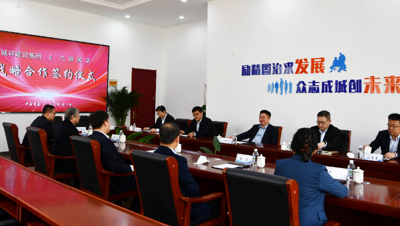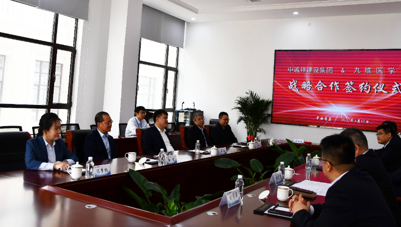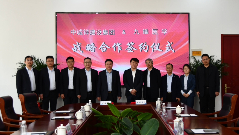3月11日,中诚祥建设集团与青岛九维医学创新研究院在集团公司会议室签署战略合作协议,双方就市场推广领域及业务协同创新发展进行深入探讨交流,共建共享,结成深度的战略合作伙伴关系。九维集团董事长姚嘉、集团副总张红年、设计院总经理孙波、董事长助理胡凯淇、市场部总监迟梦钒参加签约仪式,中诚祥建设集团董事长陈相华、总裁陶官思、执行总裁傅隆、执行总裁刘彦辰、副总裁刘坤出席会议。