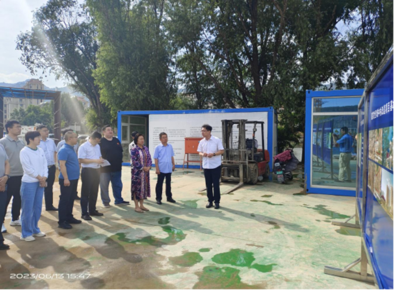 2023年6月13日,青岛市政协副主席姜巧珍莅临由中诚祥建设集团承建的戴家社区项目参观,集团公司执行总裁傅隆和总裁助理叶新光陪同参观。