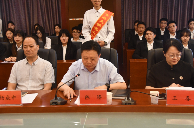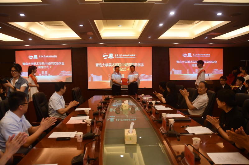 青岛大学党委常委、副校长陈涛,学生工作处处长王春、副处长李慧晶,美术学院党委书记杨成中、院长王绍波、党委副书记郭瑾瑜、副院长周松林,中诚祥建设集团董事长陈相华、执行总裁刘彦辰、副总裁刘坤、综合管理部常务副总经理秦凯出席此次仪式。陈涛副校长、陈相华董事长分别代表学校和公司发表了重要讲话。