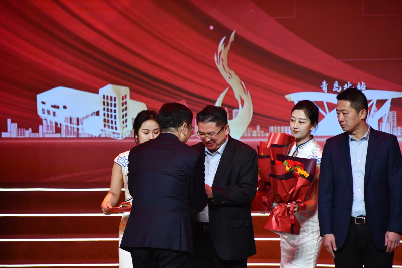 在仪式现场,李沧区区委副书记傅跃鑫为集团董事长陈相华颁奖。