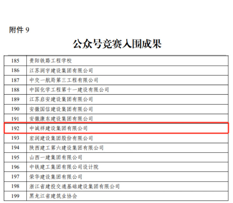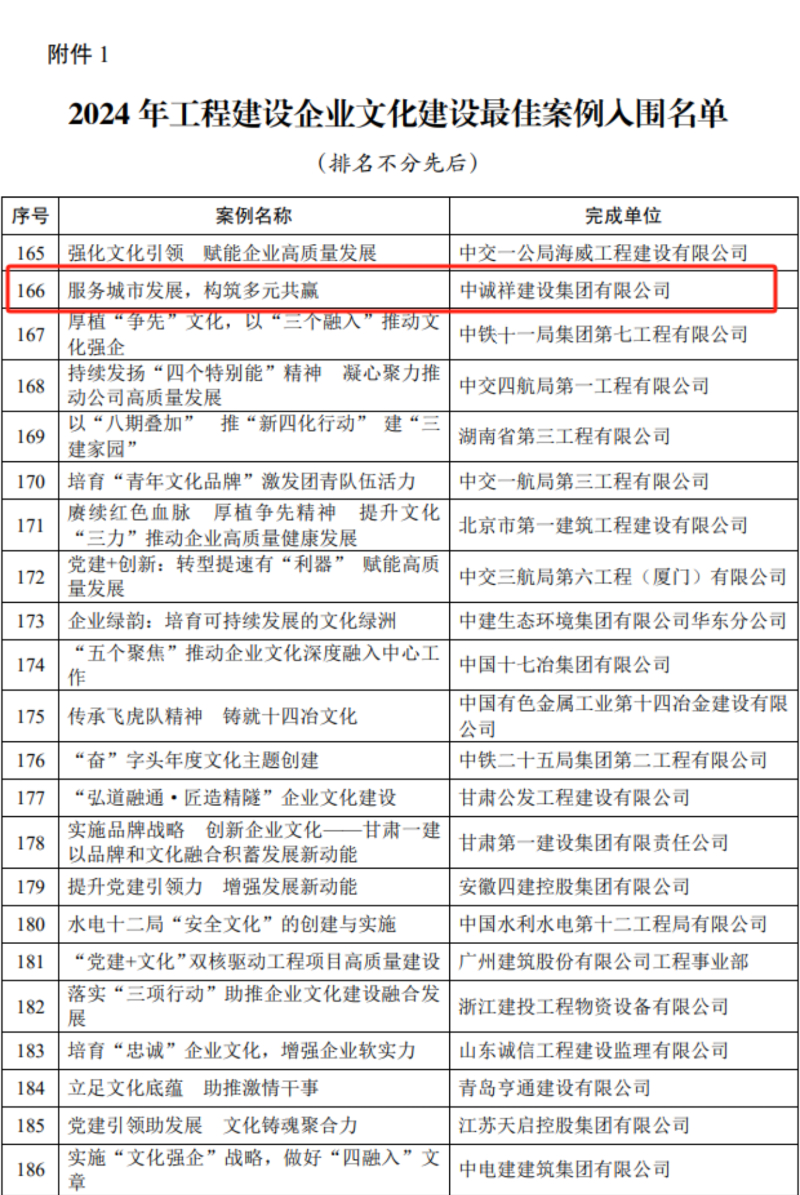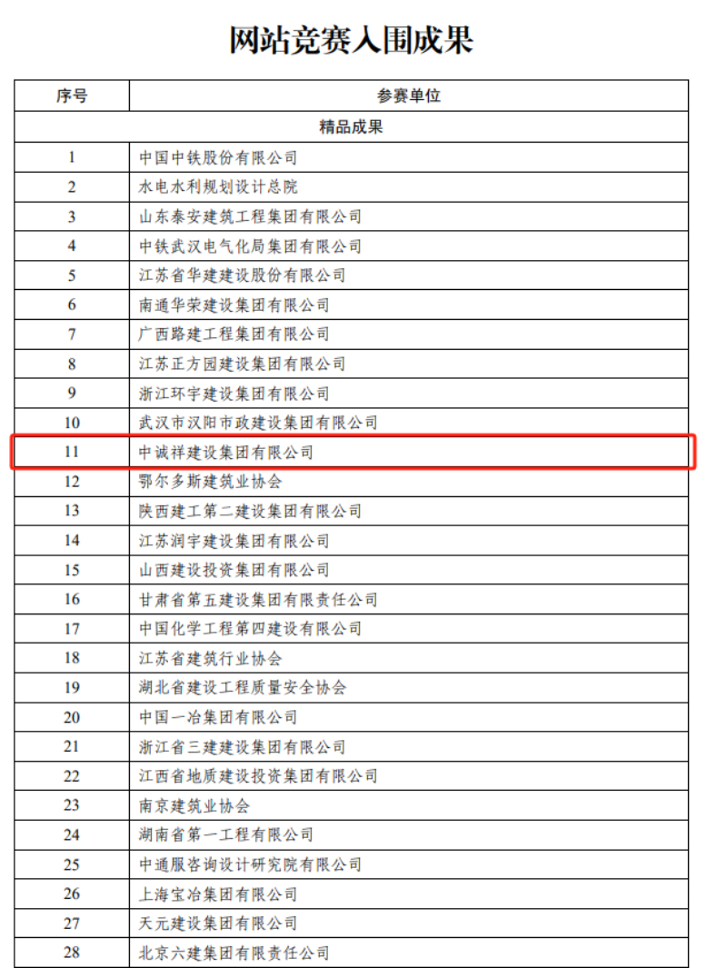 8月14日,中国施工企业管理协会公布了2024 年工程建设企业文化建设系列活动入围成果,中诚祥建设集团有限公司顺利获评企业文化建设优秀案例、网站精品成果与微信公众号优秀成果。