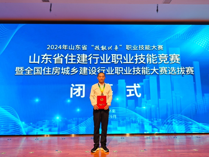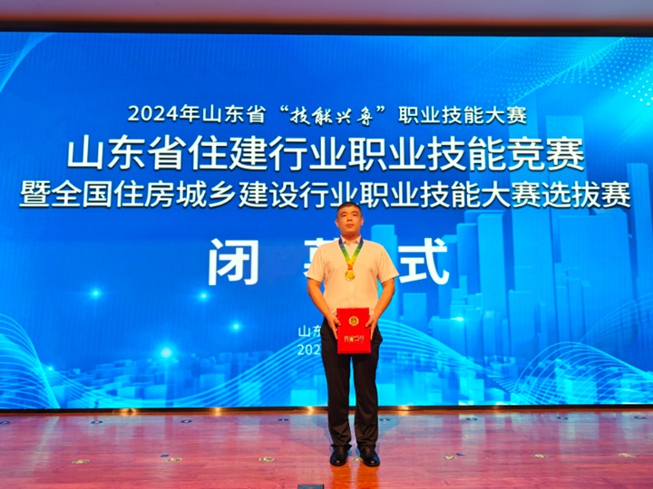 9月14日上午,2024年山东省“技能兴鲁”职业技能大赛—住建行业职业技能竞赛暨全国住房城乡建设行业职业技能大赛山东省选拔赛在济南市举行闭幕式暨颁奖仪式,对获得荣誉的选手和团队进行表彰奖励。省住房城乡建设厅厅长王玉志出席仪式并讲话。