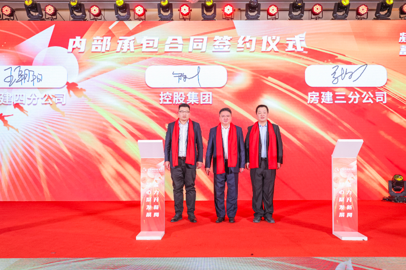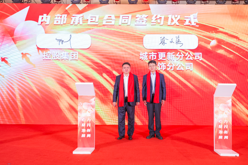 随后,集团城市更新、装饰、市政、四个房建分公司进行了内部承包合同签订仪式。